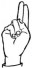 На ћирилици написано СИМОНА ГАЋЕ састоји се из 10 слова [?]. Исписано ћириличном једноручном азбуком за глувонеме:
